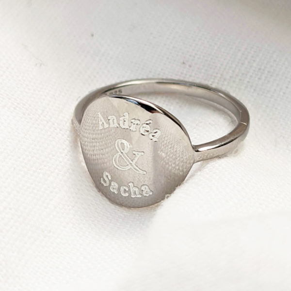 Bague disque personnalisée gravée avec prénom, date ou symbole – bijou unique en argent ou plaqué or, parfait comme cadeau personnalisé.