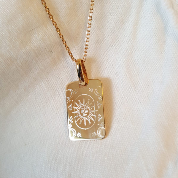Le collier céleste - Médaille autour du féminin sacré, de l'astrologie, des cycles lunaires et du tarot. Sur le principe des cartes oracles, médaille gravée lunaire.